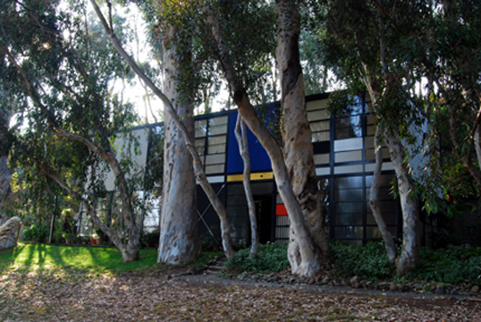 I was just down in L.A. rubbing elbows with the glitterati and decided to make a side trip to Pacific Palisades to see the Eames House. It's a museum now and you can tour the outside while peering in through the windows to see the Eames' personal furniture and knick knacks. It was built in 1949 as part of the Case Study House Project (House #8), it's modern but also warm and livable something that today's designers could learn from.