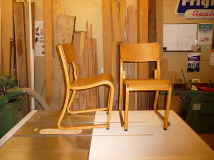 And a pair of Dodd's stacking chairs made by Aero Marine Industries in Oakville, Ontario - Designed in 1952 by Hugh Dodds.